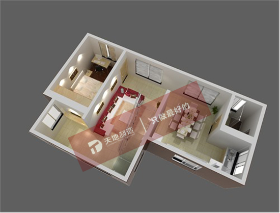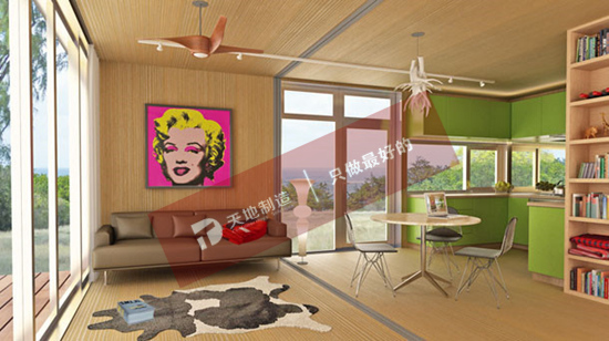 是由多個(gè)普通標(biāo)準(zhǔn)集裝箱改裝而成,公寓同時(shí)還可以建陽(yáng)臺(tái)和室外樓梯。房屋內(nèi)部可以根據(jù)需要設(shè)休息區(qū)域、廚房和臥室,配有相應(yīng)的衣櫥柜子等必要家具。